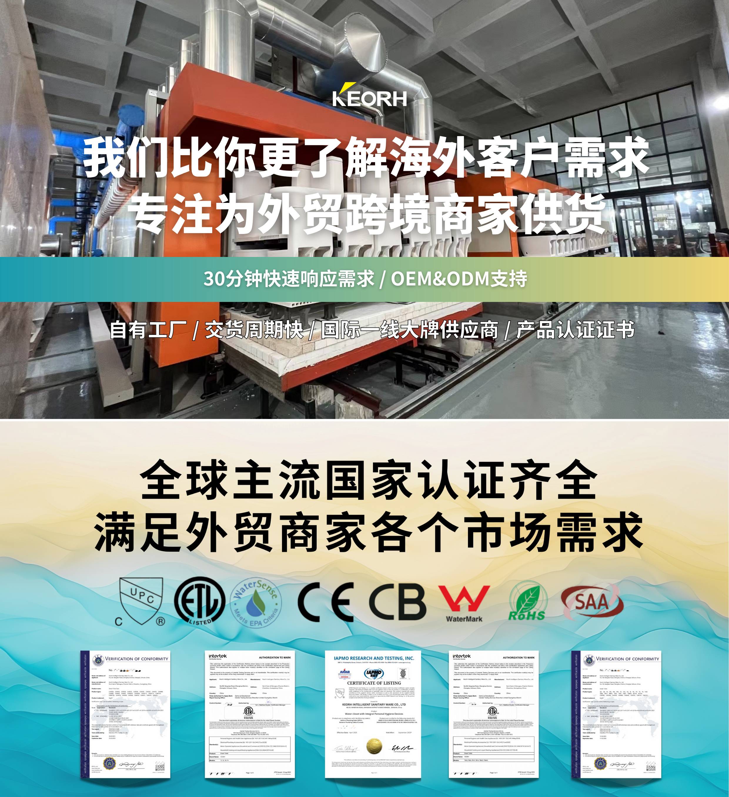 出口欧洲CE双遥控挂壁坐便器含隐藏水箱直冲式Keorh科净智能马桶